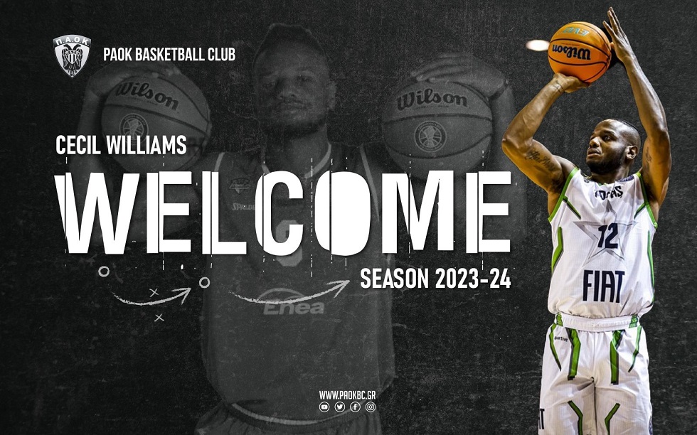 «Η ΚΑΕ ΠΑΟΚ mateco ανακοινώνει τη συμφωνία με τον Αμερικανό καλαθοσφαιριστή Cecil Williams, ο οποίος θα ενισχύσει την προσπάθεια της ομάδας μας σε πρωτάθλημα και κύπελλο Ελλάδας μέχρι το τέλος της σεζόν 2023-24.