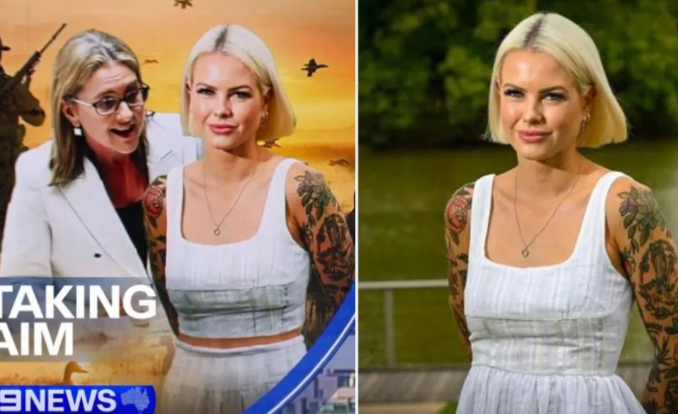 Η πειραγμένη φωτογραφία της Georgie Purcell μεταδόθηκε σε ρεπορτάζ για τη διαφωνία της 31χρονης πολιτικού με την απόφαση της κυβέρνησης να μην απαγορεύσει το κυνήγι πάπιας στη Βικτώρια.