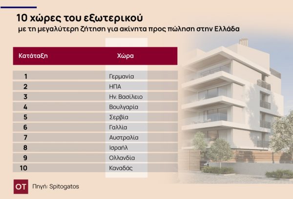 Οι χώρες του εξωτερικού με τη μεγαλύτερη ζήτηση για ακίνητα προς πώληση στην Ελλάδα