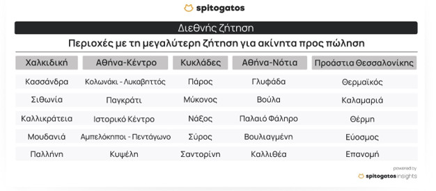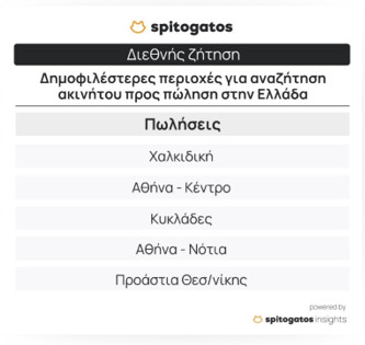 in.gr > Plus > Τα Νέα της Αγοράς > Spitogatos: Οι δημοφιλέστερες περιοχές για αγορά και ενοικίαση ακινήτων το 2023 – Αυξημένη η ζήτηση για ακίνητα προς πώληση από το εξωτερικό