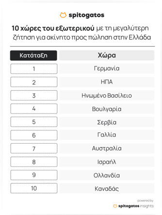 Οι χώρες του εξωτερικού με τη μεγαλύτερη ζήτηση για ακίνητα προς πώληση στην Ελλάδα