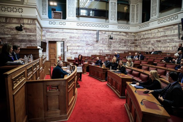 Στιγμιότυπο από την ενημέρωση των βουλευτών από τον Μαργαρίτη Σχοινά