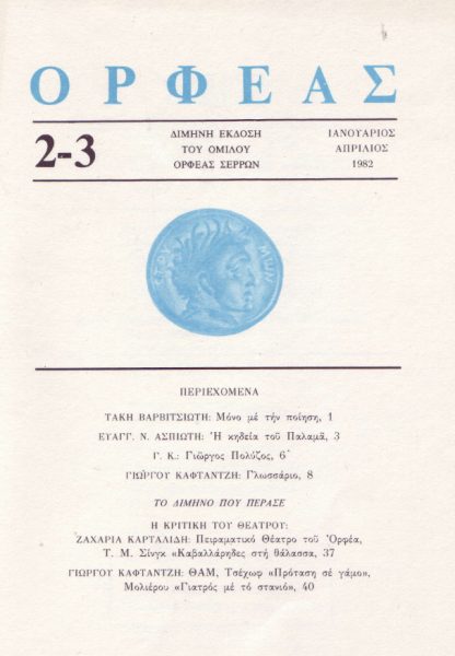 *Ποίημα του Τάκη Βαρβιτσιώτη, που είχε περιληφθεί στο λογοτεχνικό και καλλιτεχνικό περιοδικό «Ορφέας» το 1982 (έκδοση του ομίλου «Ορφέας Σερρών», τόμος Α’, τεύχος 2-3, Ιανουάριος – Απρίλιος 1982).
