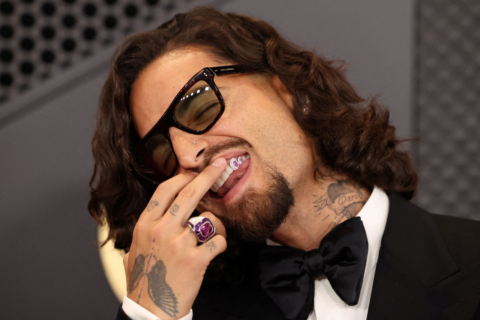Ο Κολομβιανός τραγουδιστής και τραγουδοποιός Maluma δείχνει τα κοσμήματα των δοντιών του / Photo: Reuters
