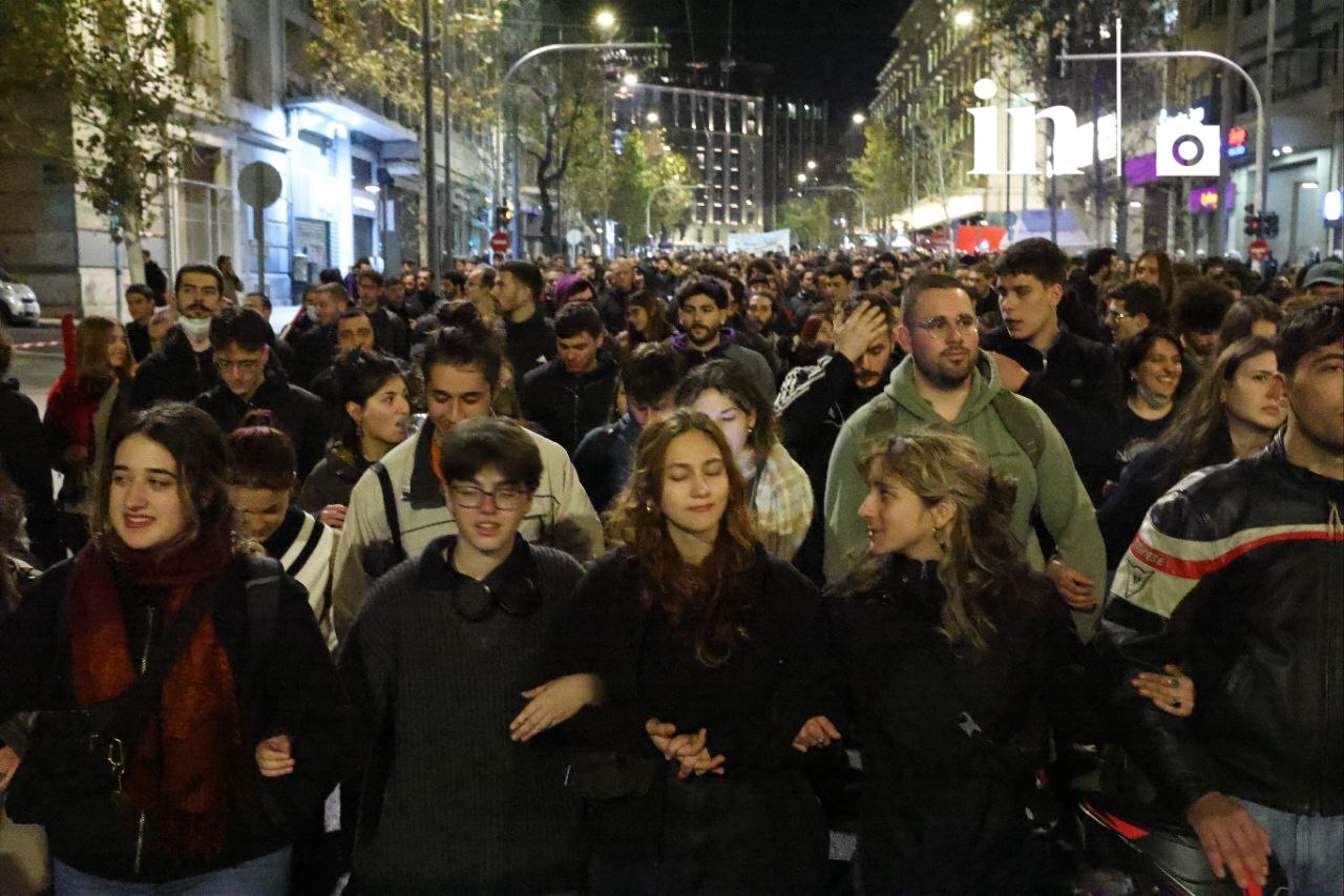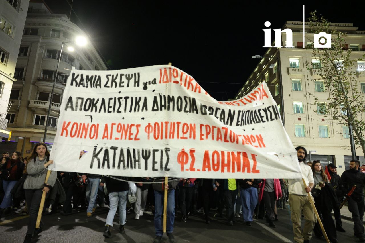 Φοιτητικοί σύλλογοι, εργατικά σωματεία και σωματεία εκπαιδευτικών πραγματοποίησαν διαδήλωση υποστήριξης του φοιτητικού κινήματος στα Προπύλαια και πλέον κινούνται μέσω της Σταδίου προς τη Βουλή.