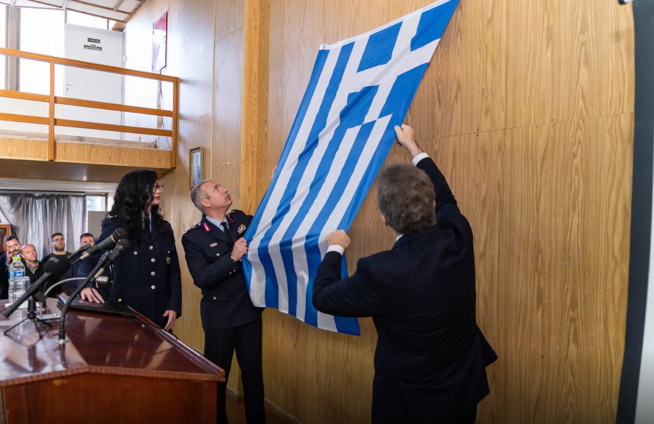 Στη συνέχεια ο Υπουργός Προστασίας του Πολίτη και ο Αρχηγός της ΕΛ.ΑΣ. προχώρησαν στα αποκαλυπτήρια της τιμητικής πλακέτας φωνάζοντας «ΑΘΑΝΑΤΟΣ».