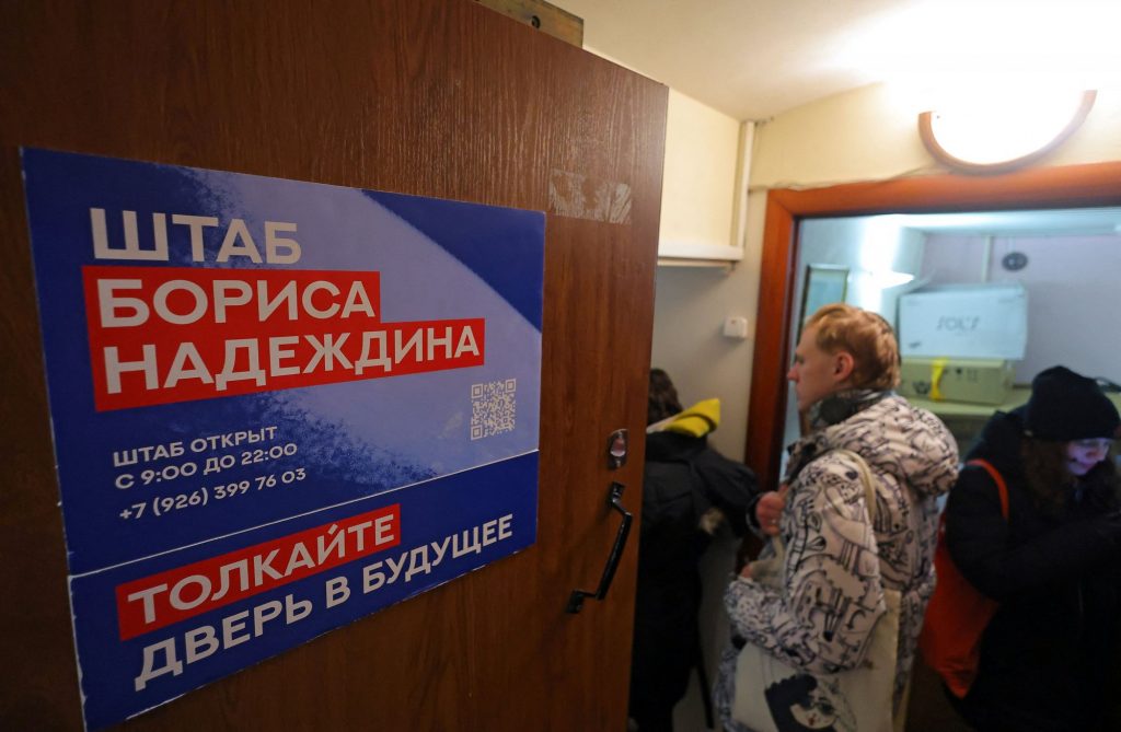 Ρώσοι σχηματίζουν ουρές σε γραφείο της προεκλογικής εκστρατείας του Μπόρις Ναντέζντιν, για να στηρίξουν την προεδρική υποψηφιότητά του (REUTERS/Evgenia Novozhenina)