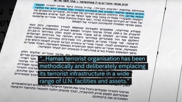 Σύμφωνα με το Channel 4 News, ο φάκελος αναφέρει απλώς ότι «από πληροφορίες των μυστικών υπηρεσιών, έγγραφα και ταυτότητες που κατασχέθηκαν κατά τη διάρκεια των μαχών, είναι πλέον δυνατόν να επισημανθούν περίπου 190 τρομοκράτες της Χαμάς και της Παλαιστινιακής Ισλαμικής Τζιχάντ που υπηρετούν ως υπάλληλοι της UNRWA. Περισσότεροι από 10 υπάλληλοι της UNRWA έλαβαν μέρος στην έβδομη Οκτωβρίου».