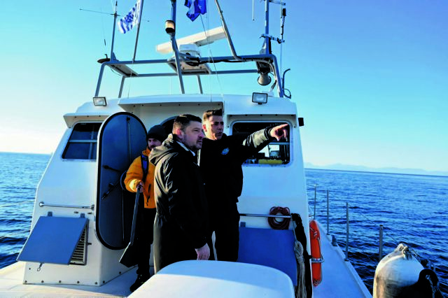 O Νίκος Χαρδαλιάς επιβιβάστηκε σε σκάφος του Λιμενικού και κατευθύνθηκε στον όρμο Πέρανι, ανοιχτά της Σαλαμίνας, στο σημείο όπου έγινε η δολιοφθορά