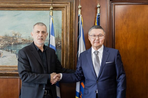 Ο Δήμαρχος Πειραιά Γιάννης Μώραλης υποδέχθηκε στο Δημαρχείο τον Πρέσβη της Δημοκρατίας του Καζακστάν στην Ελλάδα Yerlan Baudarbek –Kozhatayev.