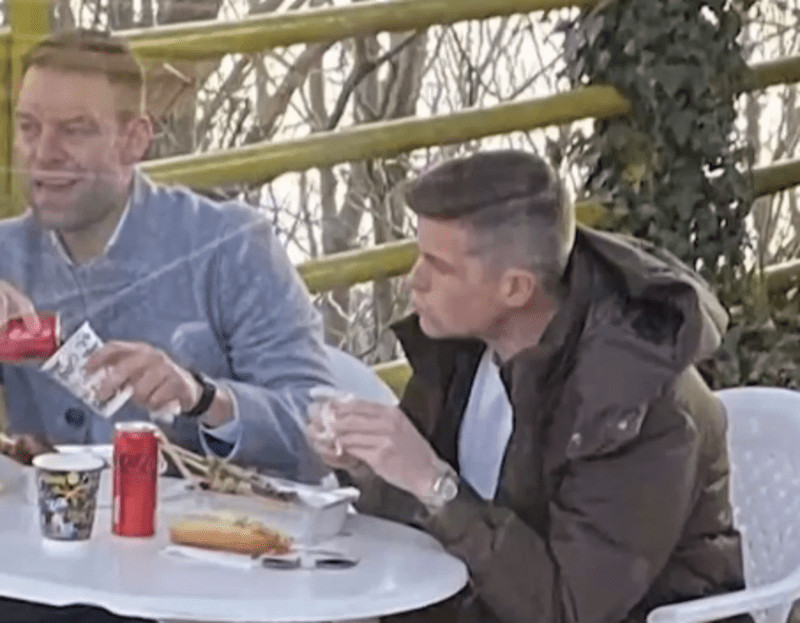 Σε ότι αφορά το μενού, η ιδιοκτήτρια ανέφερε ότι «Έφαγαν σουβλάκια και λουκάνικα, ήπιαν το αναψυκτικό τους και ενώ έτρωγαν μιλούσαν με τον κόσμο». Όπως λέει η ιδιοκτήτρια της καντίνας, Κασσελάκης και McBeth σταμάτησαν στο σημείο για να δουν το πρόβλημα που κρατάει κλειστή τη γέφυρα, αλλά και για να γυρίσουν ένα σποτ για την Παιδεία.