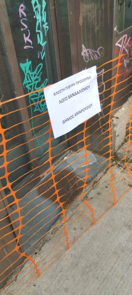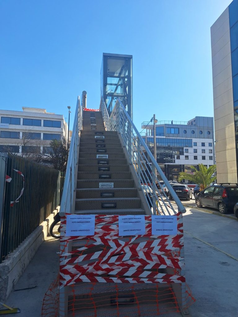 Για πολλοστή φορά πεζογέφυρα στο Μαρούσι βανδαλίζεται και φέρνει σε απόγνωση τον Δήμο που κάθε τρεις και λίγο αναγκάζεται να αποκαθιστά τις ζημιές, δαπανώντας χρήματα από τα δημοτικά ταμεία που προορίζονται να καλύψουν άλλες ανάγκες.
