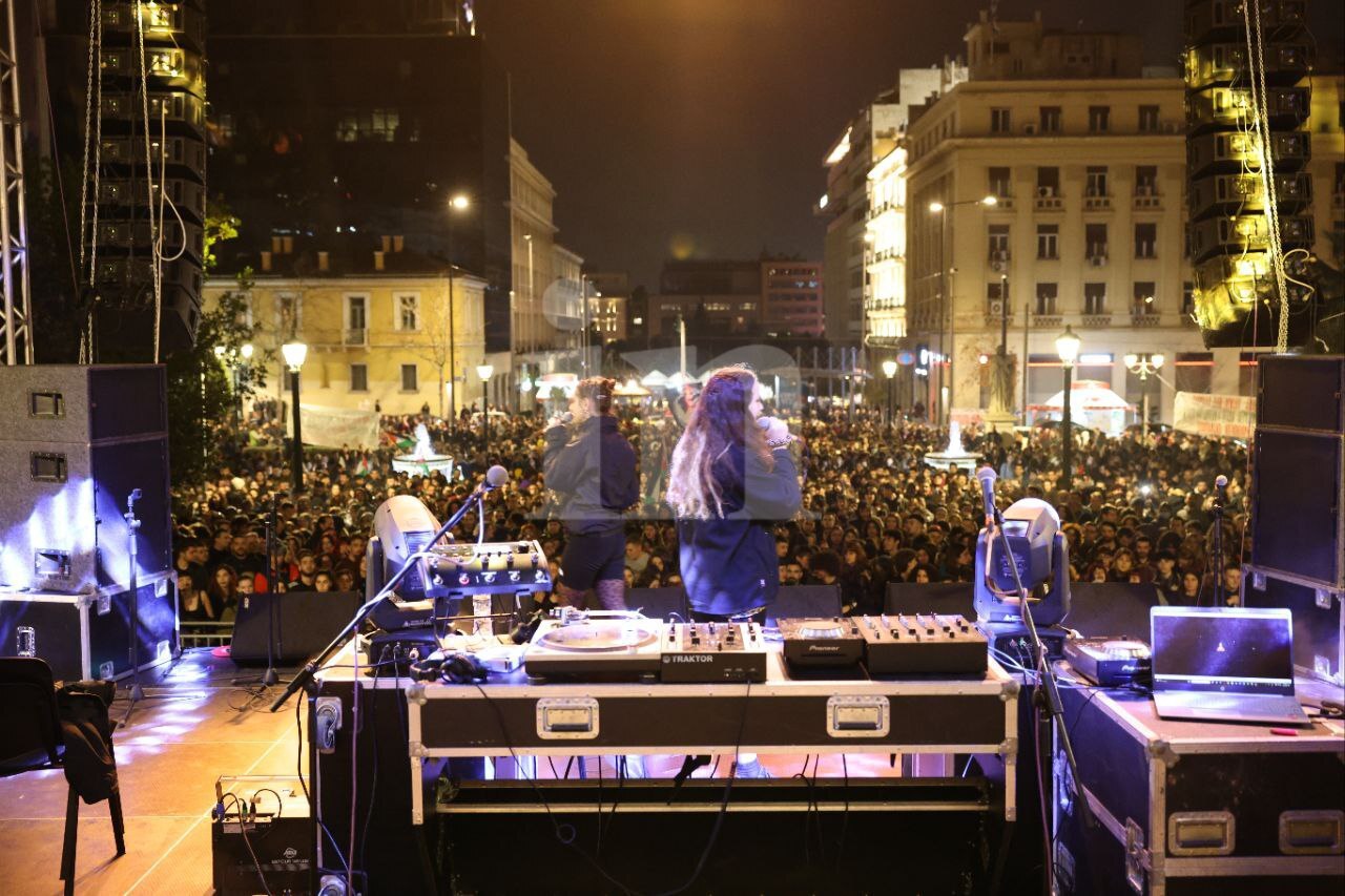 Βουλιάζει το κέντρο από τη συναυλία των φοιτητικών συλλόγων κατά των ιδιωτικών πανεπιστημίων. «Δεν θα δεχτούμε να γίνει η αδικία νόμος!» το ηχηρό μήνυμά τους.