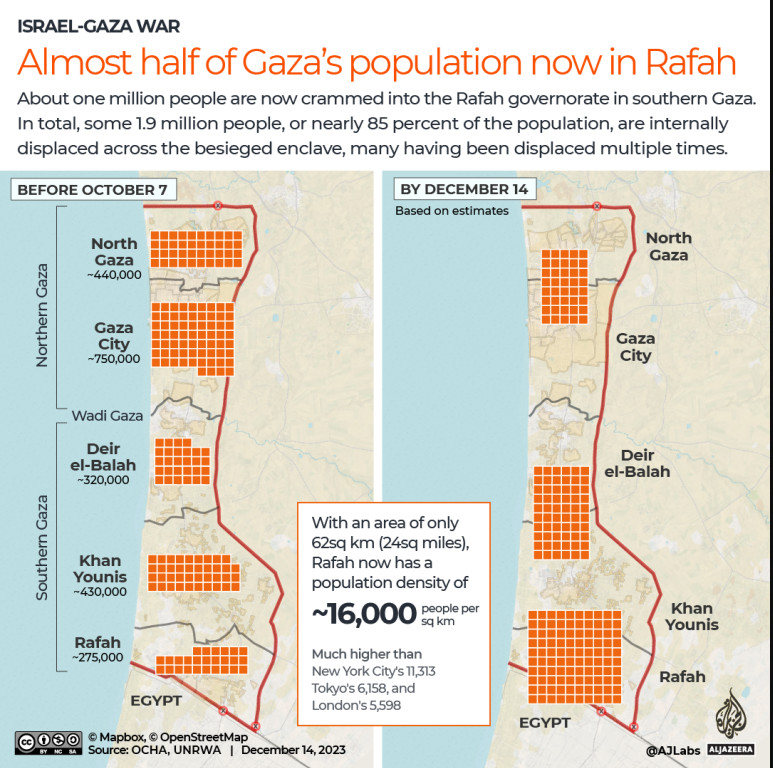 Η Ράφα έχει έκταση 62 τ.χλμ και φιλοξενεί 1,4 εκατ. Παλαιστίνιους