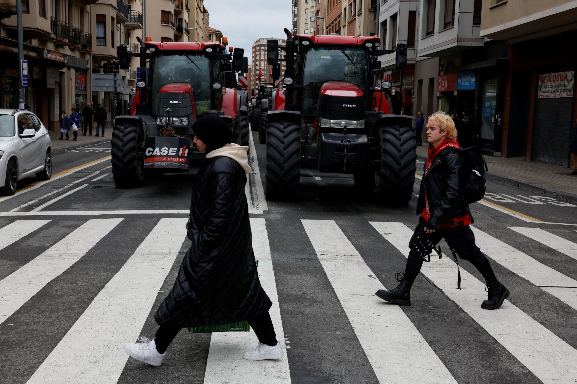 Στα περίχωρα της ισπανικής πόλης Παμπλόνα, κάτω από ψιλόβροχο και γκρίζο ουρανό και συνοδευόμενοι από ναυτικά μπλε φορτηγά της Policía Nacional, λίγοι αγρότες είχαν τη διάθεση να εξηγήσουν τα κίνητρα της διαδήλωσής τους, αλλά ένας νεαρός αγρότης από την κοντινή πόλη Estella άνοιξε την πόρτα της καμπίνας του για να μοιραστεί τα παράπονά του. «Μας πνίγουν με όλους αυτούς τους κανονισμούς», είπε. «Πρέπει να χαλαρώσουν όλες τις οδηγίες και τη γραφειοκρατία. Δεν μπορούμε να ανταγωνιστούμε άλλες χώρες όταν τα πράγματα είναι έτσι. Είμαστε … πνιγμένοι» είπαν οι αγρότες στον Guardian.