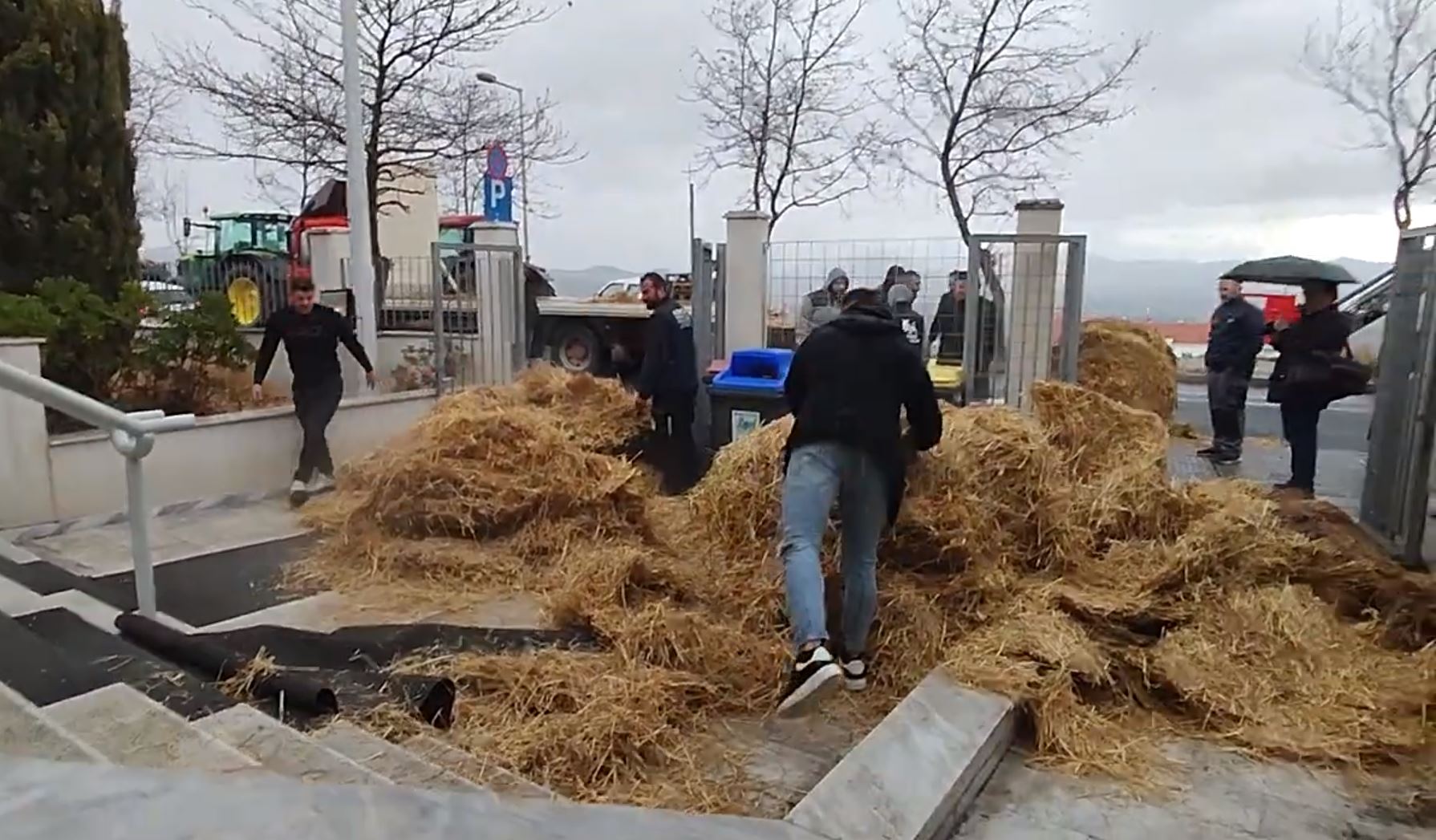 Άχυρα και…κοπριά πέταξαν το μεσημέρι της Κυριακής αγρότες στο κτίριο της Περιφέρειας Δυτ. Μακεδονίας.