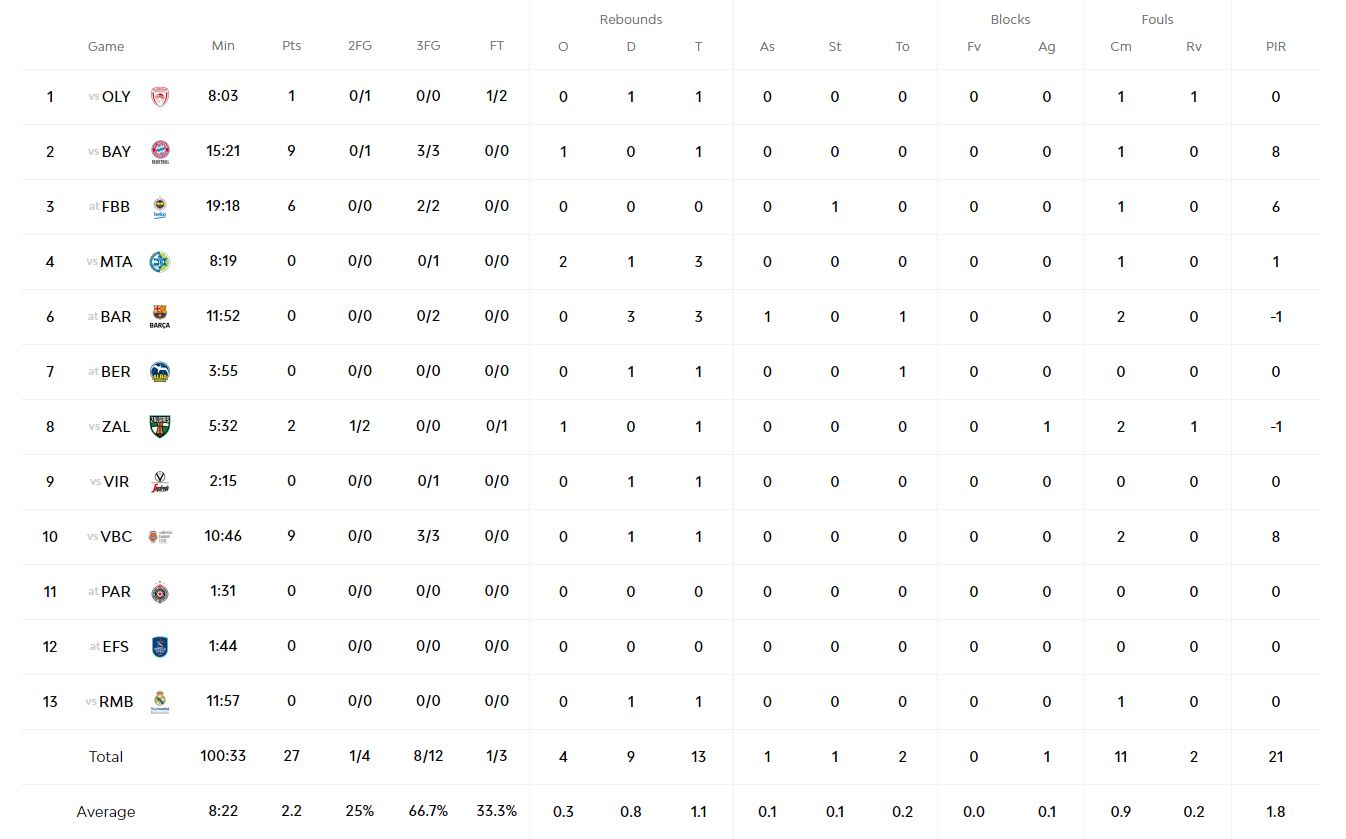 Η ίωση τον πήγε πίσω, αλλά και ο Αταμάν δείχνει ότι δεν θέλει να ρισκάρει το παραμικρό, είναι ξεκάθαρος με το ροτέισον τόσο στη Euroleague όσο και στην Basket League και αυτό σημαίνει ότι ο Μαντζούκας μένει περισσότερη ώρα καθηλωμένος στον πάγκο. Συνολικά στη Euroleague έχει 2,2 πόντους, 1,1 ριμπάουντ και μόλις 1,8 στο σύστημα αξιολόγησης, γενικά δείχνει να μην είναι μέλος του ροτέισον ειδικά μετά την ίωση που πέρασε και το καλοκαίρι είναι ιδιαίτερα κρίσιμο και για εκείνον και για τον Παναθηναϊκό.
