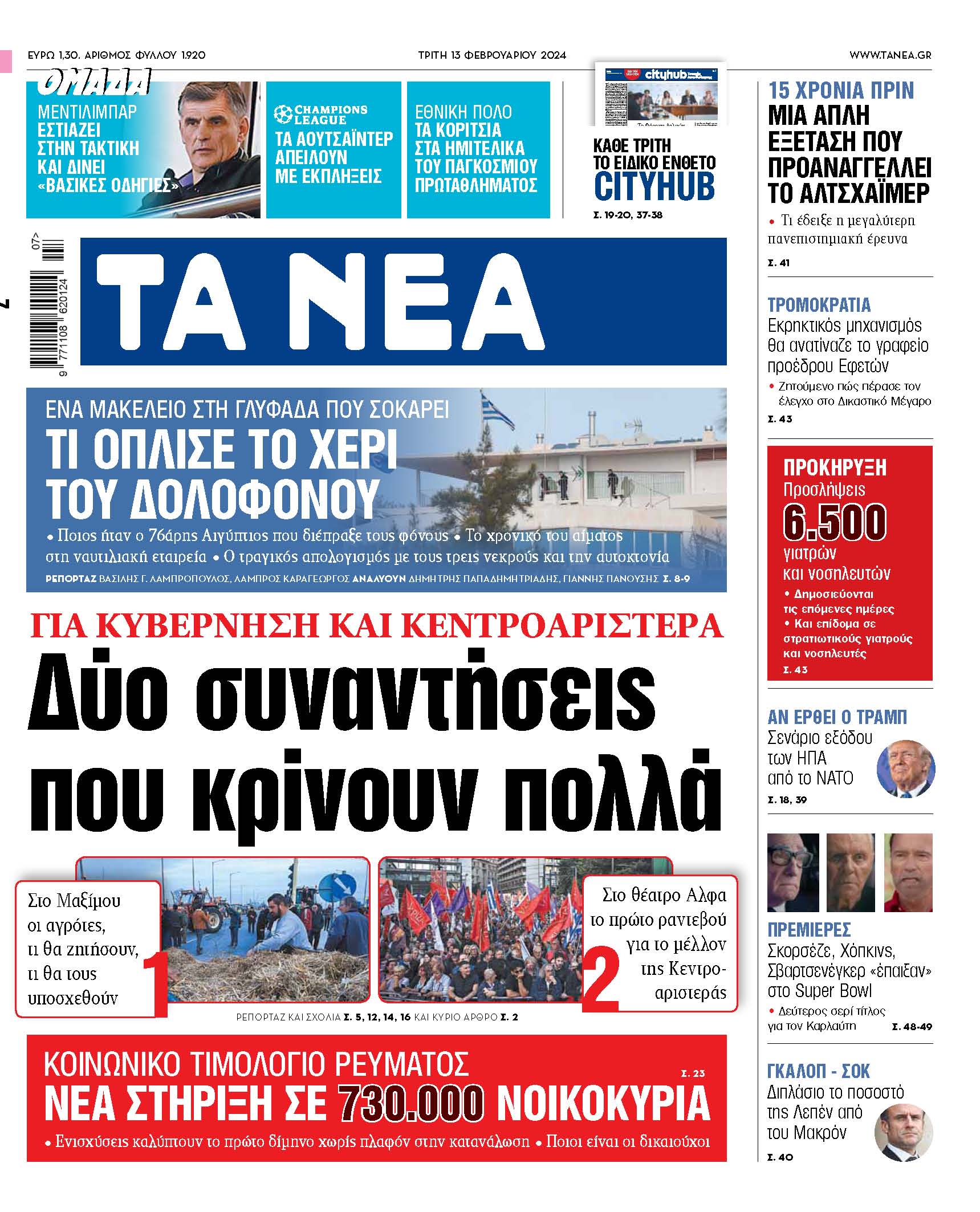 1) Στο Μαξίμου οι αγρότες, τι θα ζητήσουν, τι θα τους υποσχεθούν 2) Στο θέατρο Αλφα το πρώτο ραντεβού για το μέλλον της Κεντροαριστεράς ===================