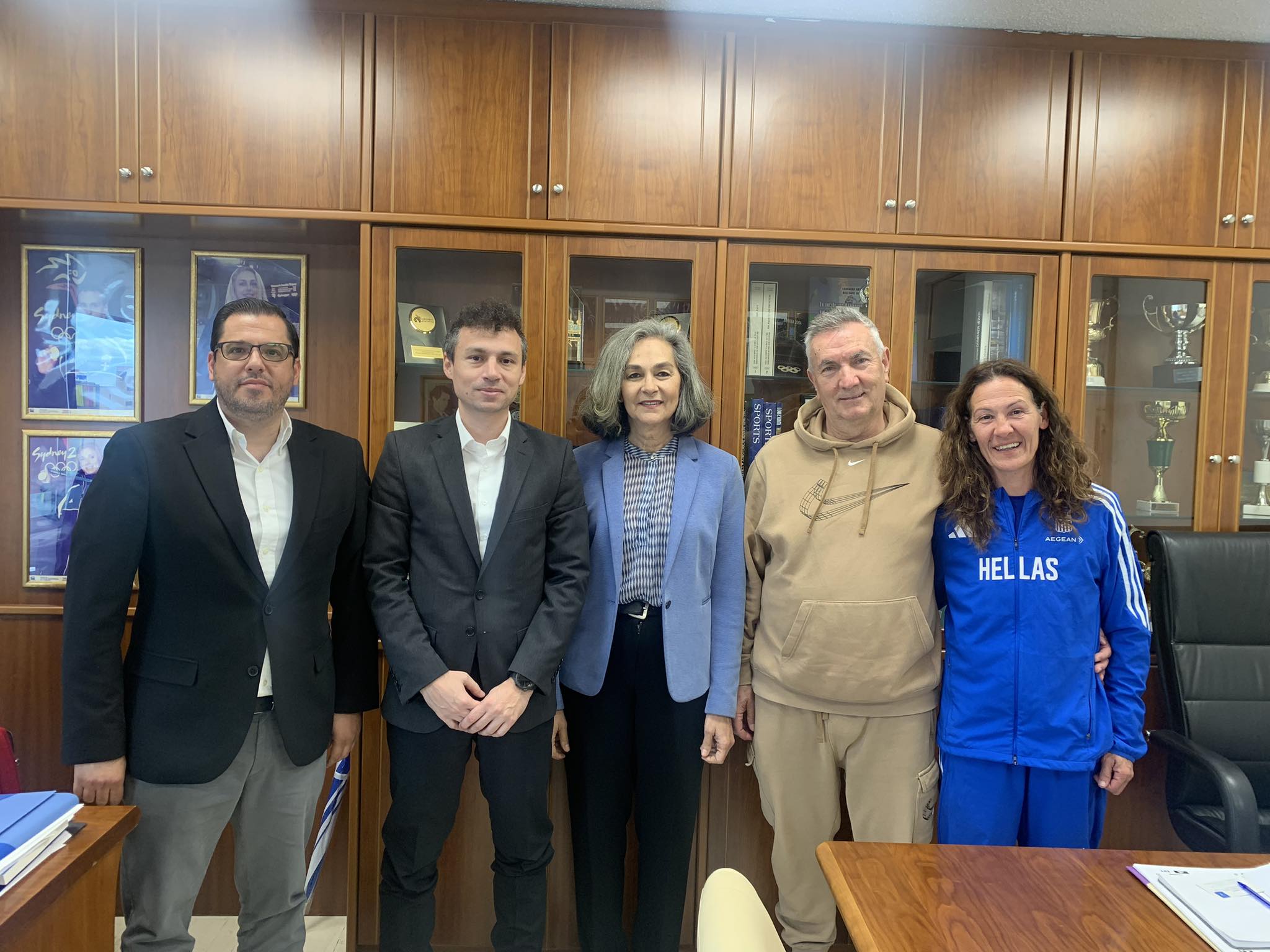 Η συνάντηση του Δημάρχου κ. Αρμοδίου Δρίκου με την πρόεδρο του ΣΕΓΑΣ κ. Σοφία Σακοράφα θέτει τα θεμέλια για μια συνεργασία με την Ομοσπονδία όπου επίκεντρο θα έχει την ανάπτυξη του αθλητικού ιδεώδους στην περιοχή. Το παρών στη συνάντηση έδωσαν ακόμη ο β΄ αντιπρόεδρος του ΣΕΓΑΣ, Ιάκωβος Πετσούλας, η εκπρόσωπος των προπονητών στο Δ.Σ του ΣΕΓΑΣ, Φλώρα Ρεντούμη και ο Αντιδήμαρχος κ. Κωνσταντίνος Ρόκας.