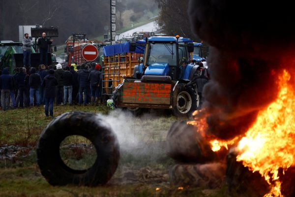 Αγρότες στη Γαλλία καίνε λάστιχα στο πλαίσιο των διαμαρτυριών τους για τις τιμές των προϊόντων τους, τους φόρους και τους ευρωπαϊκούς κανονισμούς (φωτογραφία Reuters/Stephane Mahe)