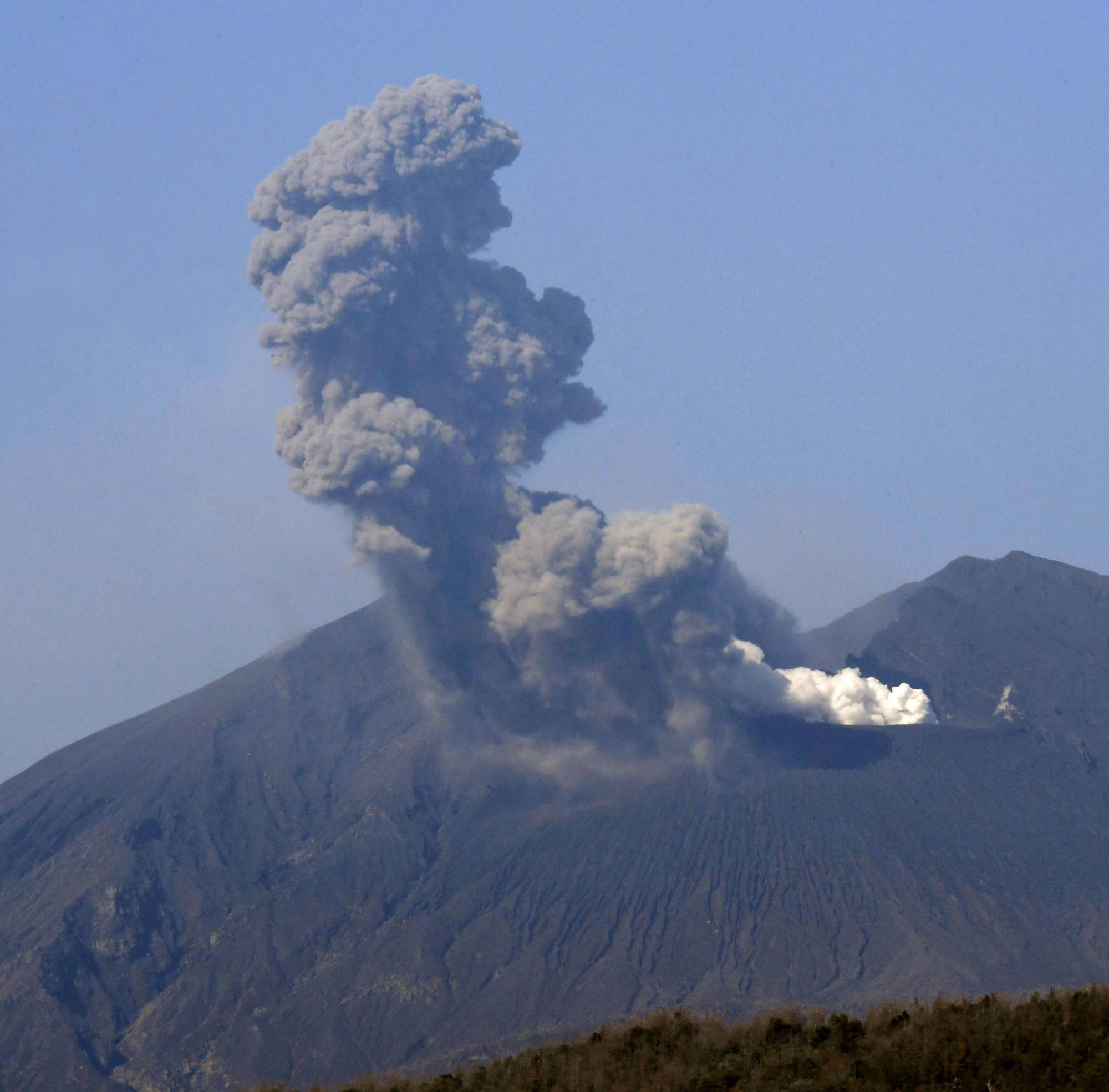 Una columna de humo y cenizas se elevó a 2 kilómetros sobre el cráter en la prefectura de Kagoshima. pic.twitter.com/UaogV27uuM