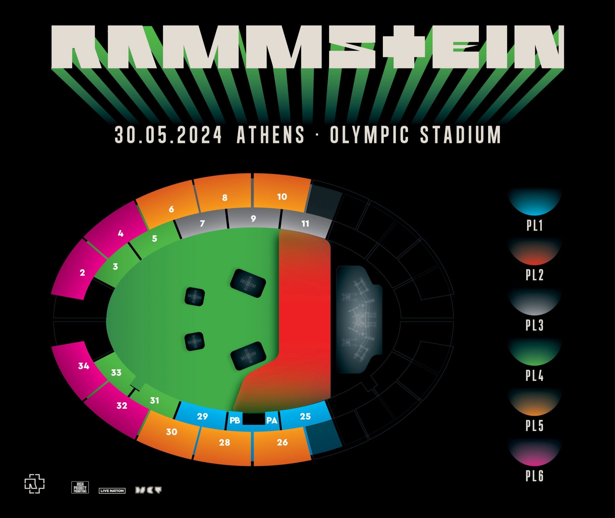 Τα εισιτήρια της Feuer Zone (PL2) κατηγορίας όπως αντίστοιχα και της Standing (PL3) κατηγορίας (βλ. χάρτη) ισχύουν κανονικά και για το νέο venue.