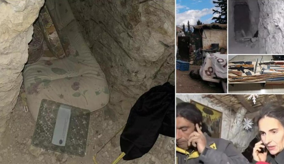 Το “λαγούμι” που είχαν σκάψει, βγαίνει σε μία ρεματιά και θα το χρησιμοποιούσαν ως οδό διαφυγής. Εκεί εντοπίστηκε αεροβόλο όπλο, κυνηγετική καραμπίνα, τσεκούρια, αλλά και αυτοσχέδια τόξα με βέλη.