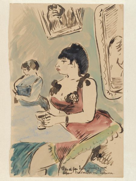 Ο Μπερνάρ είχε γράψει στην ακουαρέλα ένα προφανώς πρόχειρο σχόλιο στα γαλλικά, το οποίο μεταφράζεται ως «στον φίλο μου Βίνσεντ, αυτό το ανόητο σκίτσο». Αυτό που βρίσκεται στην πίσω όψη αποτελεί έκπληξη: ένα ποίημα που είχε γράψει ο Μπερνάρ για τα δεινά της πορνείας, καταδικάζοντάς την ως ένα διεφθαρμένο σύστημα που θυματοποιεί τις γυναίκες.