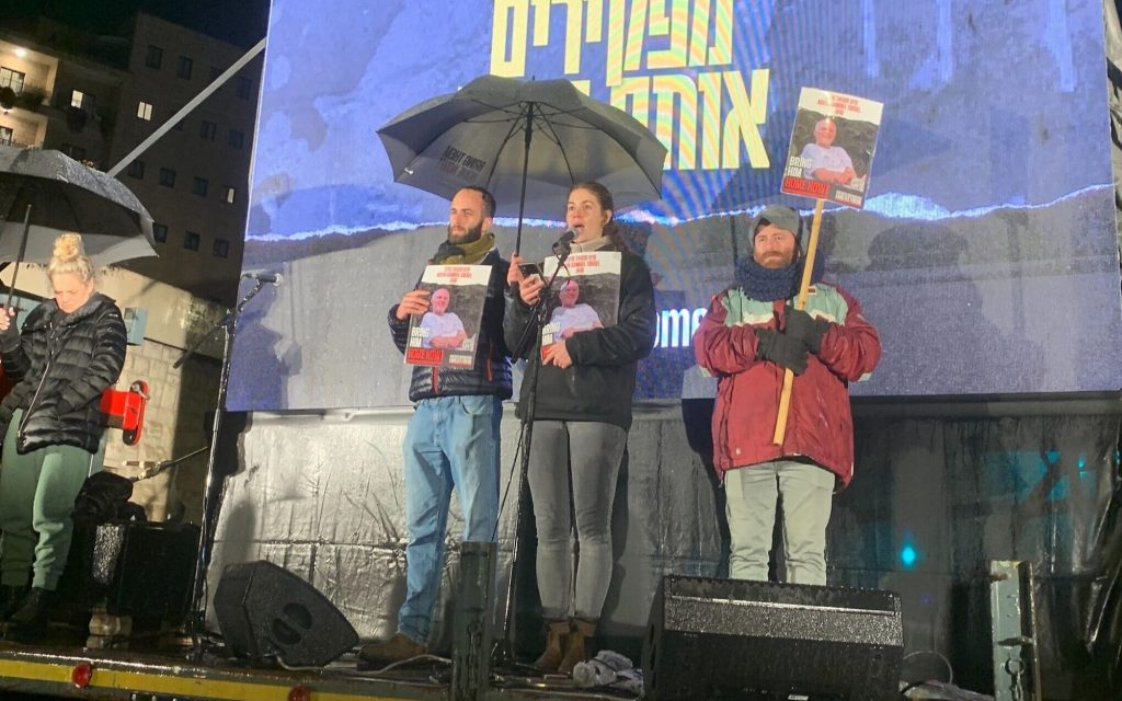 Η Σίρα Σίγκελ, κόρη του 64χρονου ομήρου της Χαμάς, Κιθ Σίγκελ, μίλησε σε πλήθος διαδηλωτών έξω από την κατοικία του πρωθυπουργού Μπενιαμίν Νετανιάχου στην Ιερουσαλήμ.