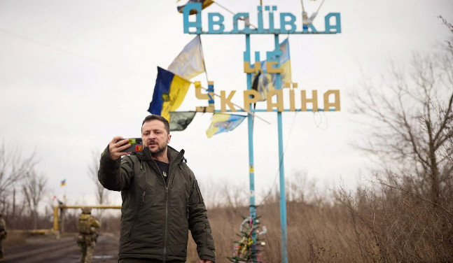Οι δυνάμεις του ουκρανικού στρατού αποσύρθηκαν από την Αβντιίβκα, στο ανατολικό τμήμα της χώρας, όπου η κατάσταση είχε επιδεινωθεί ραγδαία τις τελευταίες ημέρες, ανακοίνωσε ο ουκρανός στρατηγός Ολεξάντρ Ταρνάβσκι, διοικητής της περιοχής (στη φωτογραφία του Reuters, επάνω, ο πρόεδρος της Ουκρανίας Βολοντίμιρ Ζελένσκι βγάζει σέλφι στην Αβντιίβκα τον περασμένο Δεκέμβριο για να δείξει ότι η πόλη βρίσκεται υπό ουκρανικό έλεγχο).