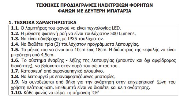 Ενδεικτικό μέρος του πίνακα για τους φακούς που θα χρησιμοποιεί η δημοτική αστυνομία: