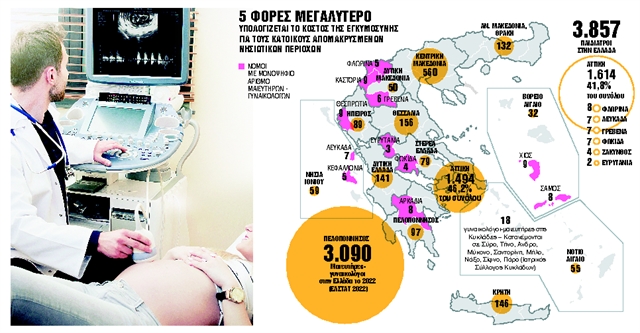 Η άνιση πρόσβαση σε υπηρεσίες υγείας κρίσιμες για την έγκυο αποτυπώνεται γλαφυρά στην εξαιρετικά ανισόμετρη κατανομή των γυναικολόγων-μαιευτήρων ανά την ελληνική επικράτεια.