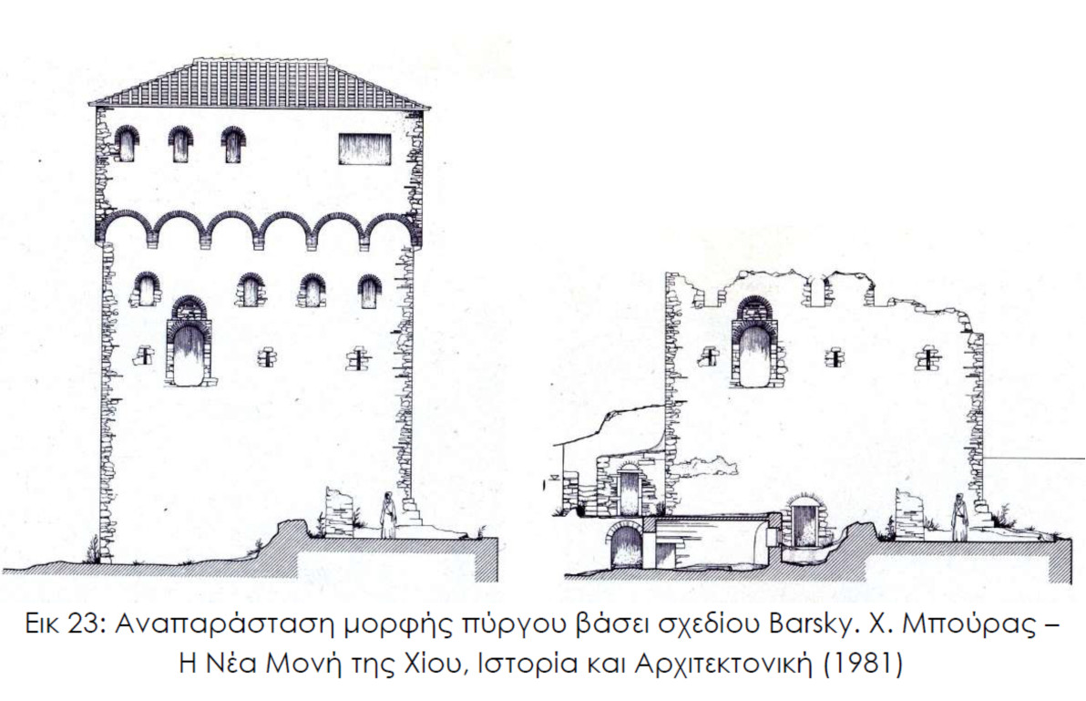 Ο οχυρός πύργος του μοναστηριού που υψώνεται στο δυτικό άκρο του περιβόλου της Νέας Μονής