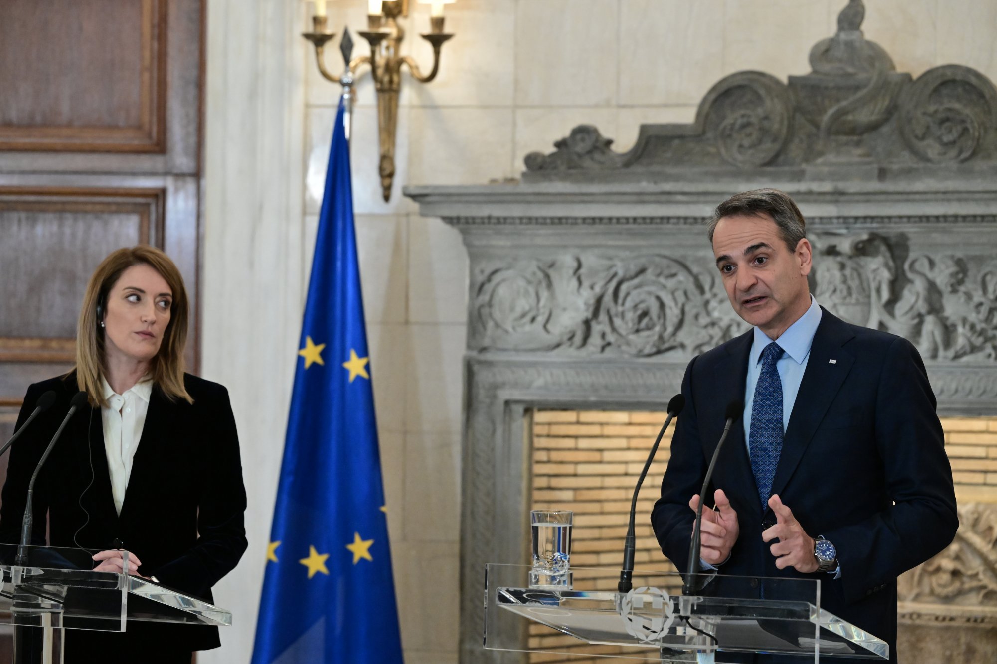 Ολοκληρώθηκαν οι κοινές δηλώσεις του Κυριάκου Μητσοτάκη και της προέδρου του Ευρωκοινοβουλίου Ρομπέρτα Μετσόλα. Στην αρχή τον λόγο έλαβε ο πρωθυπουργός, ο οποίος ανέφερε πως οι συζητήθηκαν όλα τα θέματα που απασχολούν την Ευρώπη και πως η συνεργασία ήταν εποικοδομητική.