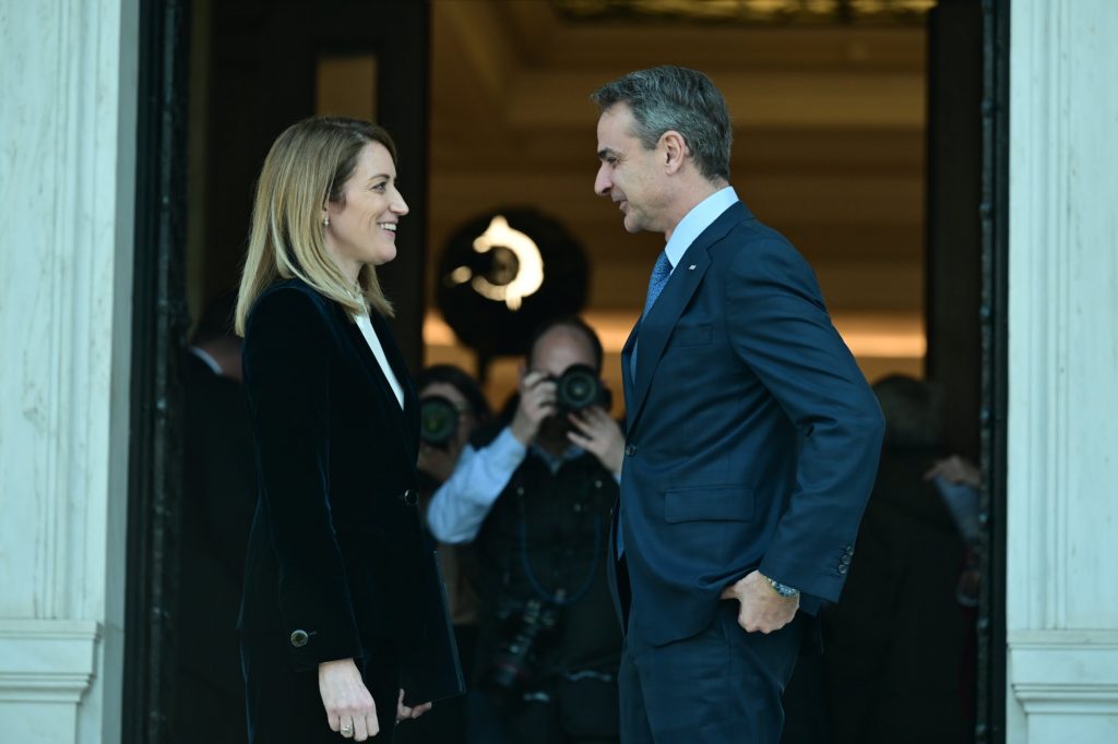 Στο Μέγαρο Μαξίμου η συνάντηση του Κυριάκου Μητσοτάκη με την Ρομπέρτα Μετσόλα
