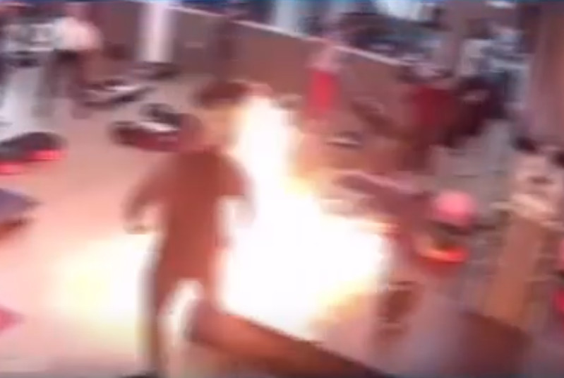 Όπως φαίνεται σε βίντεο που κυκλοφόρησε στο διαδίκτυο, ο άνδρας φαίνεται να μπουκάρει στον χώρο και να ανάβει μεγάλη φωτιά δίπλα από έναν άνδρα που κάνει βάρη. Στη συνέχεια, σε κατάσταση αμόκ αρχίζει να φωνάζει, ενώ η ικανοποίηση «ζωγραφίζεται» στο πρόσωπό του καθώς βλέπει τους ανθρώπους να τρέχουν έντρομοι.