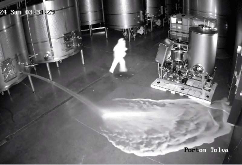 Στα πράσα πιάστηκε άγνωστος άνδρας από την κάμερα ασφαλείας του οινοποιείου στην Ισπανία, το οποίο επιχείρησε να σαμποτάρει. Το κλειστό κύκλωμα που ήταν εγκατεστημένο στην επιχείρηση κατέγραψε καρέ καρέ τις κινήσεις του αγνώστου, ο οποίος άνοιξε τις κάνουλες σε δεξαμένες με αποτέλεσμα να χυθούν 60.000 τόνοι κρασιού αξίας άνω των 2 εκατ. ευρώ.