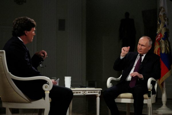 Εάν η σύγκρουση συνεχίσει στην τρέχουσα τροχιά της, η δυτική υποστήριξη είναι απίθανο ν’ αποτρέψει ακόμη και τη δραματική ήττα της Ουκρανίας, οδηγώντας πιθανώς στο είδος της ολοκληρωτικής νίκης που φαντάστηκε ο Πούτιν κατά την πρόσφατη συνέντευξη που παραχώρησε στον Τάκερ Κάρλσον (φωτογραφία Sputnik/Vladimir Smirnov via Reuters).