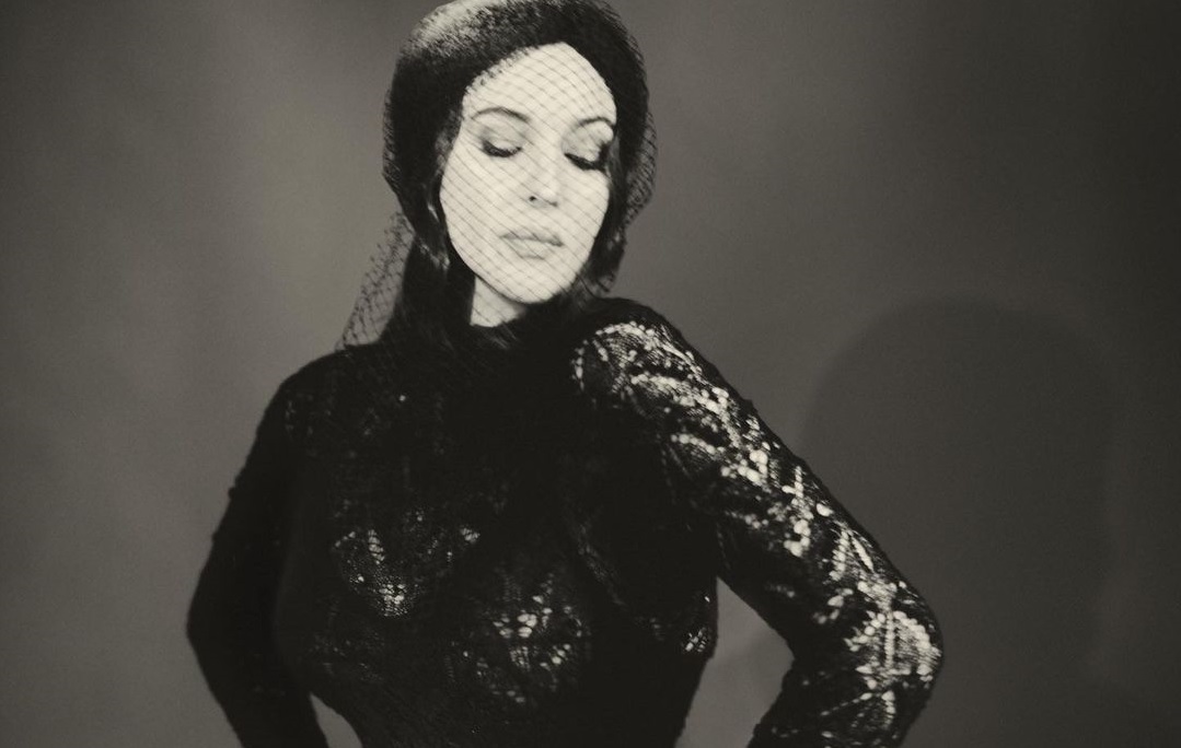 Η Μόνικα Μπελούτσι φωτογραφήθηκε για το περιοδικό με μαύρο δαντελένιο φόρεμα και βέλο. Στη λεζάντα της σχετικής ανάρτησης στο Instagram για το νέο τεύχος της, η Vogue αναφέρει: