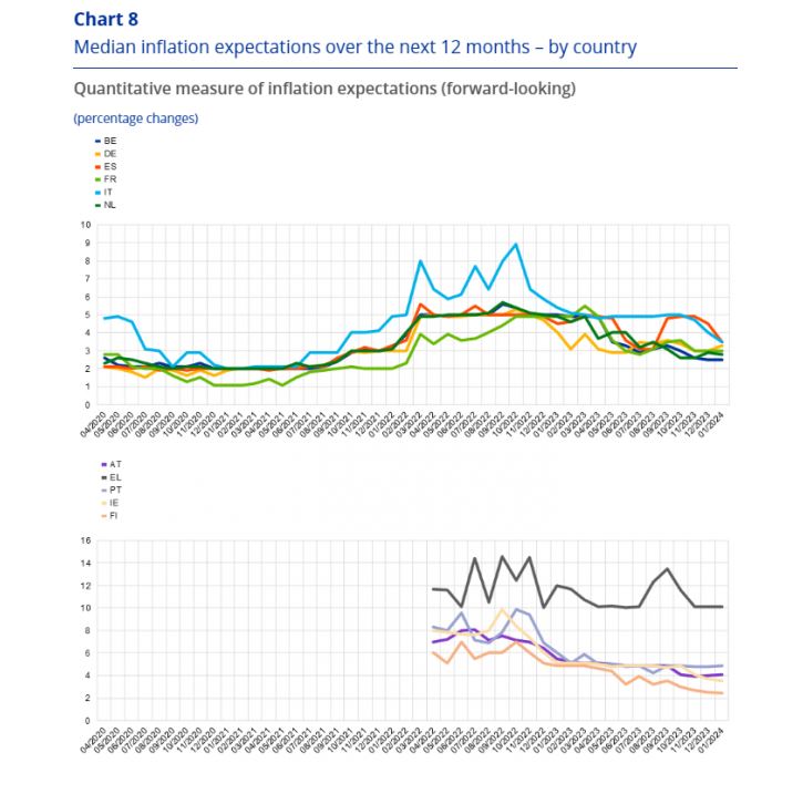 Για τον πληθωρισμό, η προσδοκία των Ελλήνων είναι ότι θα «τρέχει» με ρυθμό 10% το επόμενο 12μηνο ενώ στις 11 χώρες της Ευρωζώνης, στις οποίες γίνεται η έρευνα της ΕΚΤ, ήταν 3,3%.