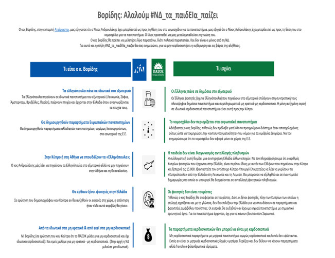 «Ο κ. Βορίδης θα πρέπει να μελετήσει λίγο παραπάνω, διότι πολιτικά παραπατάει. Και δεν είναι ο μόνος από τη Νέα Δημοκρατία. Για αυτό και η στήλη #ΝΔ_τα_παιδΕΙα_παίζει θα σας ενημερώνει για να μην κερδοσκοπήσει η κυβέρνηση και εις βάρος της αλήθειας», αναφέρουν.
