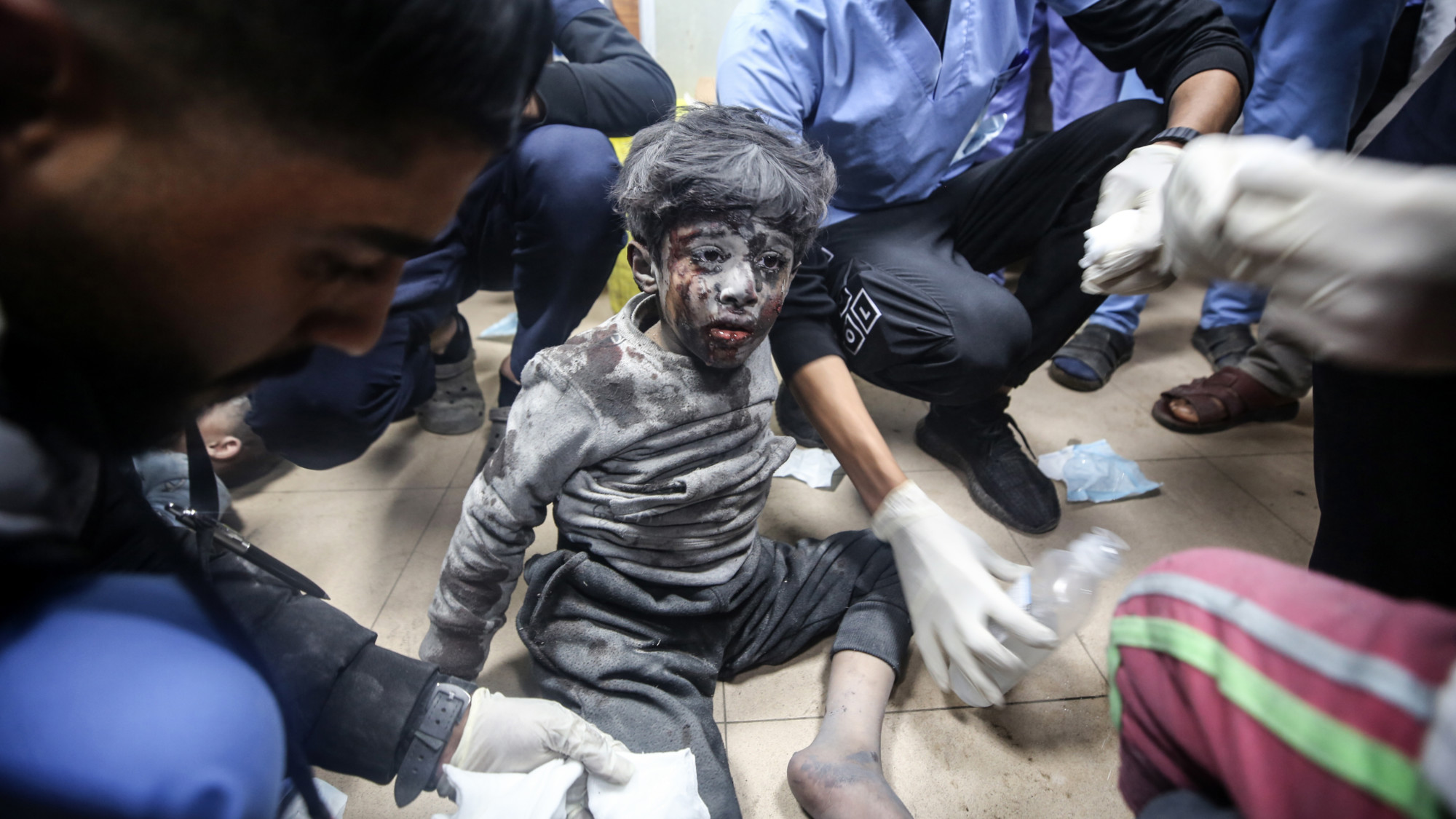 Palestinian children receive medical treatment following an Israeli bombardment in Deir Al Balah, central Gaza.