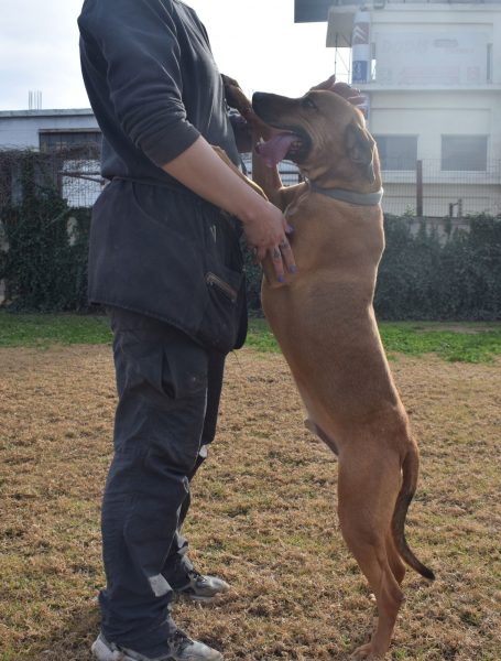 Κάνει με μεγάλη προθυμία τις ασκήσεις βασικής εκπαίδευσης, που του διδάσκει η εκπαιδεύτριά του με «όπλο» της, αρχικά, τις λιχουδιές. Έχει δεθεί πολύ μαζί της και είναι άριστος μαθητής.