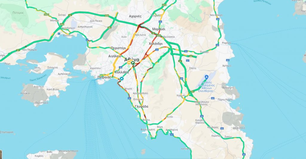 Στη Λ. Κατεχάκη σημειωτόν κινούνται τα οχήματα στο ύψος του Βύρωνα και της Καισαριανής, μέχρι το πυροφυλάκιο. Στα νότια αυξημένη κίνηση παρατηρείται στη Λ. Ποσειδώνος από το ύψος του Ελληνικού μέχρι τον Άλιμο.