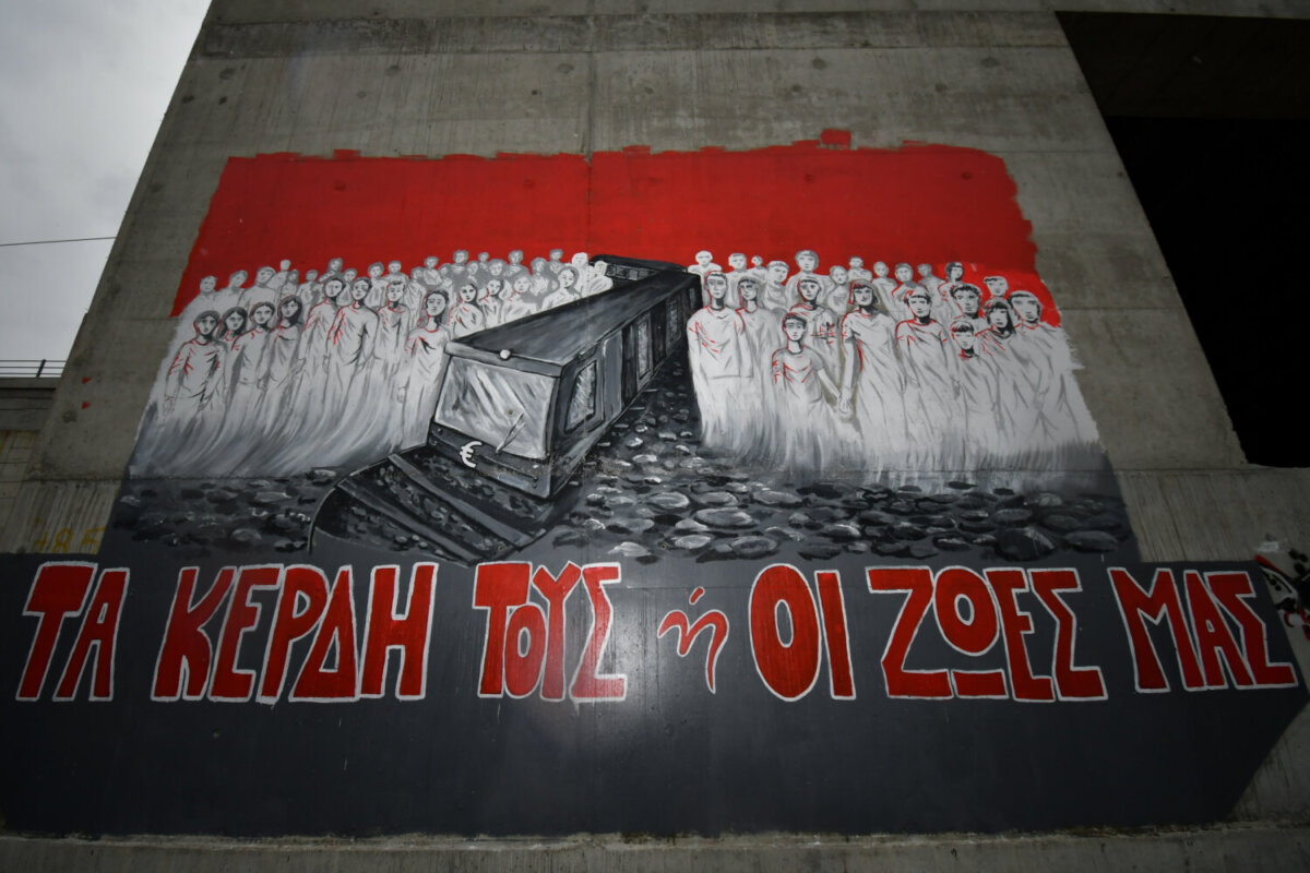 «Τα κέρδη τους ή οι ζωές μας» – Συγκλονίζει η τοιχογραφία μνήμης για τα θύματα των Τεμπών