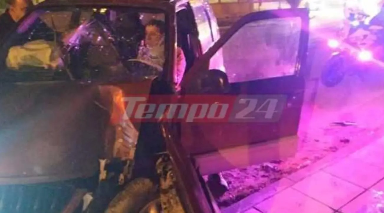 Πάτρα: Τροχαίο με δύο τραυματίες – ΙΧ «καρφώθηκε» σε κολόνα