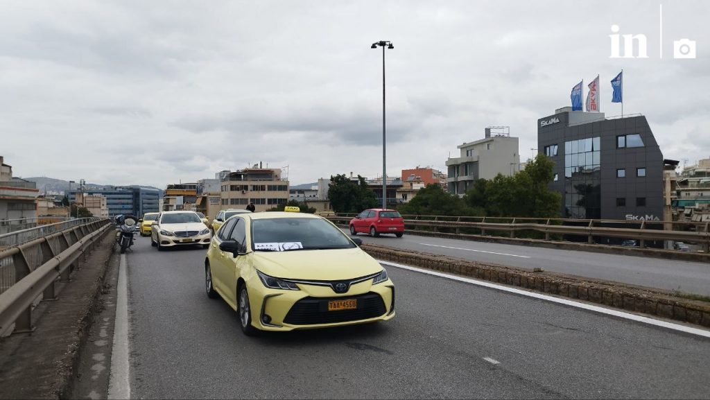 Στιγμιότυπα από την πορεία των οδηγών με τα ταξί