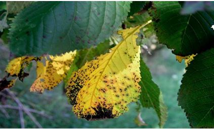 Σύμπτωμα κυλινδροσπορίωσης σε φύλλα κερασιάς