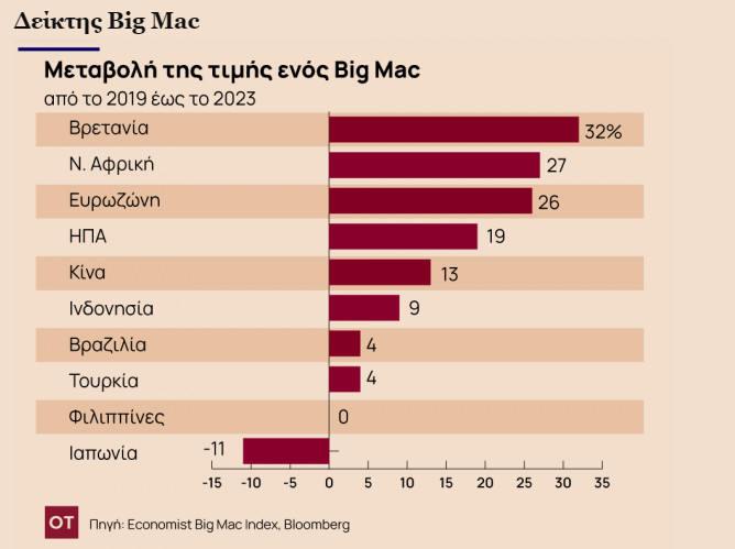 Την ίδια στιγμή, το ίδιο μενού στο Παρίσι πωλείται προς 12 ευρώ (12,80 δολάρια), στο Λονδίνο προς 8 λίρες (9,15 ευρώ ή 9,76 δολάρια), στο Βερολίνο 10 ευρώ (10,66 δολάρια), στην Αθήνα στα 8,60 ευρώ (9,17 δολάρια) ενώ στη Ζυρίχη υπολογίζεται η τιμή του στα 17 ευρώ (18,13 δολάρια).