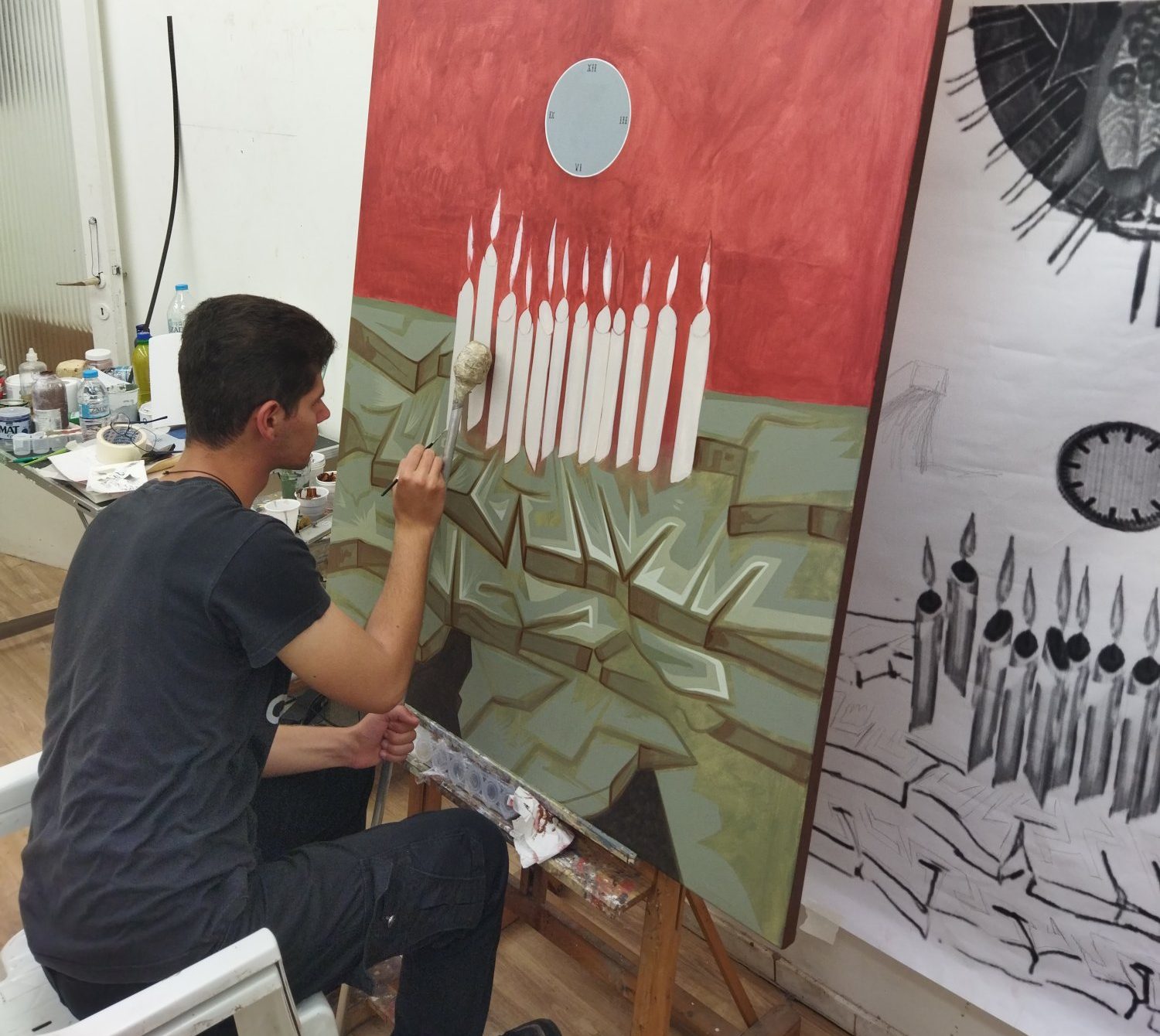 Μέσα σε διάστημα 20 ημερών, δουλεύοντας για αρκετές ώρες καθημερινά, ανά 2 ή 3 άτομα, προσπάθησαν να απαντήσουν στο ερώτημα, πώς θα μπορούσε η σύγχρονη βυζαντινή τέχνη να ανταποκριθεί σε ένα σύγχρονο θέμα και έτσι δημιούργησαν έναν πίνακα, όπου με τη βυζαντινή ζωγραφική συνυπάρχουν στοιχεία κυβισμού, ρωσικής πρωτοπορίας και μοντερνισμού.